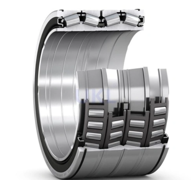 Four-row tapered roller bearings can accommodate combined (radial and axial) loads at low to moderate speeds. They are used almost exclusively in work roll applications such as rolling mills.